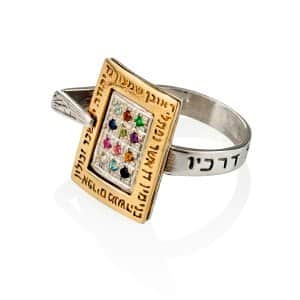 טבעת חושן "קלריס" כסף וזהב משובצת 12 אבני החושן