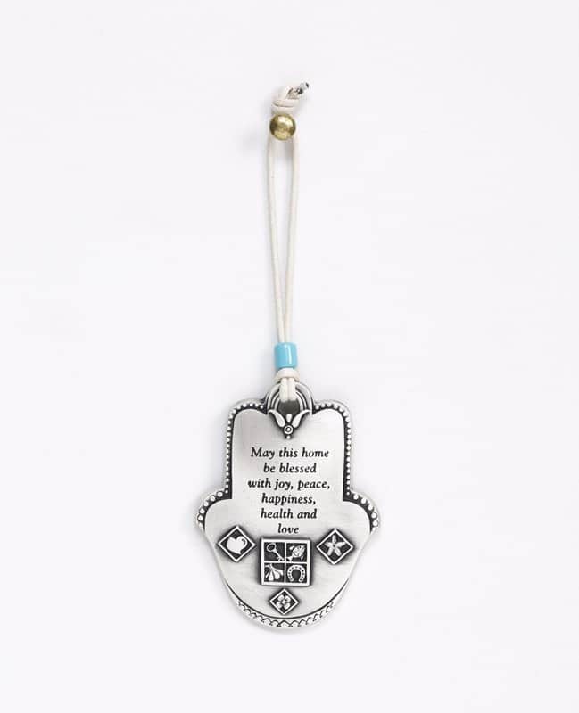 מתלה חמסה ברכת הבית בשפה האנגלית, מצופה כסף טהור, בעיצוב ייחודי.