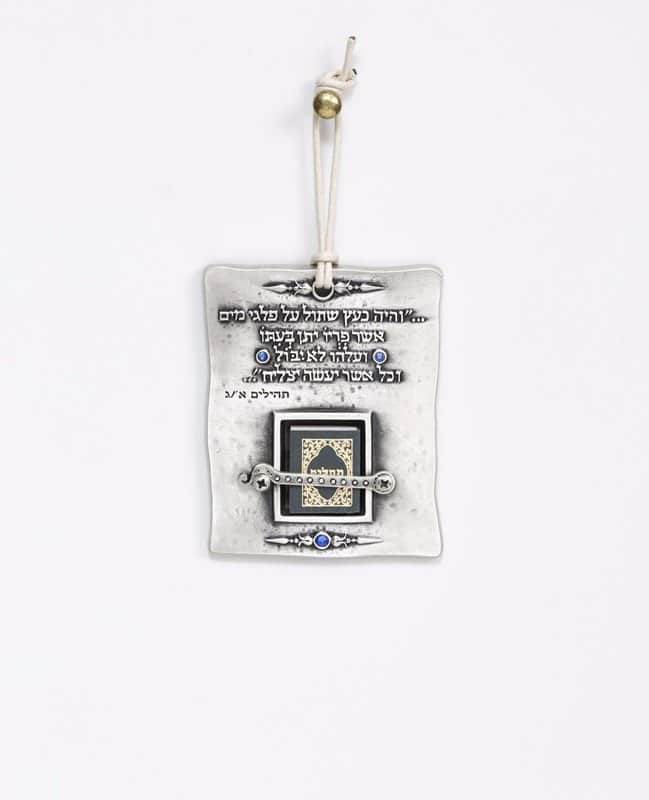 בחלקה העליון חרוט המשפט המרגש מספר תהילים: "והיה כעץ שתול על פלגי מים אשר פריו יתן בעתו ועליהו לא יבול וכל אשר יעשה יצליח".