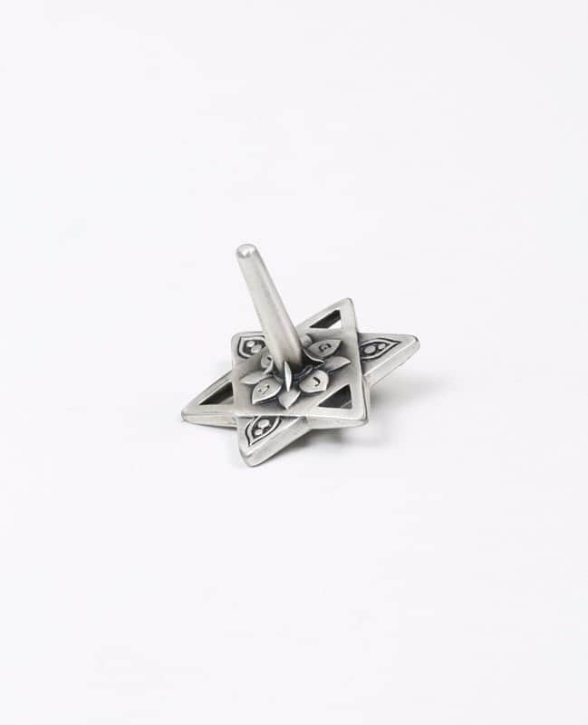 סביבון מצופה כסף טהור בצורת מגן דוד שבמרכזו עיטור פרח ועליו מסומנות האותיות "נ-ג-ה-פ".