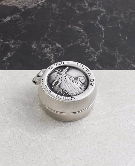 על צדה החיצוני האחד עיטור נוף ירושלים והכיתוב "אם אשכחך ירושלים תשכח ימיני" ועל צדה החיצוני השני עיטור מגן דוד עם המילים "שבת שלום" והכיתוב: "אשר קדשנו במצוותיו וציוונו להדליק נר של שבת".