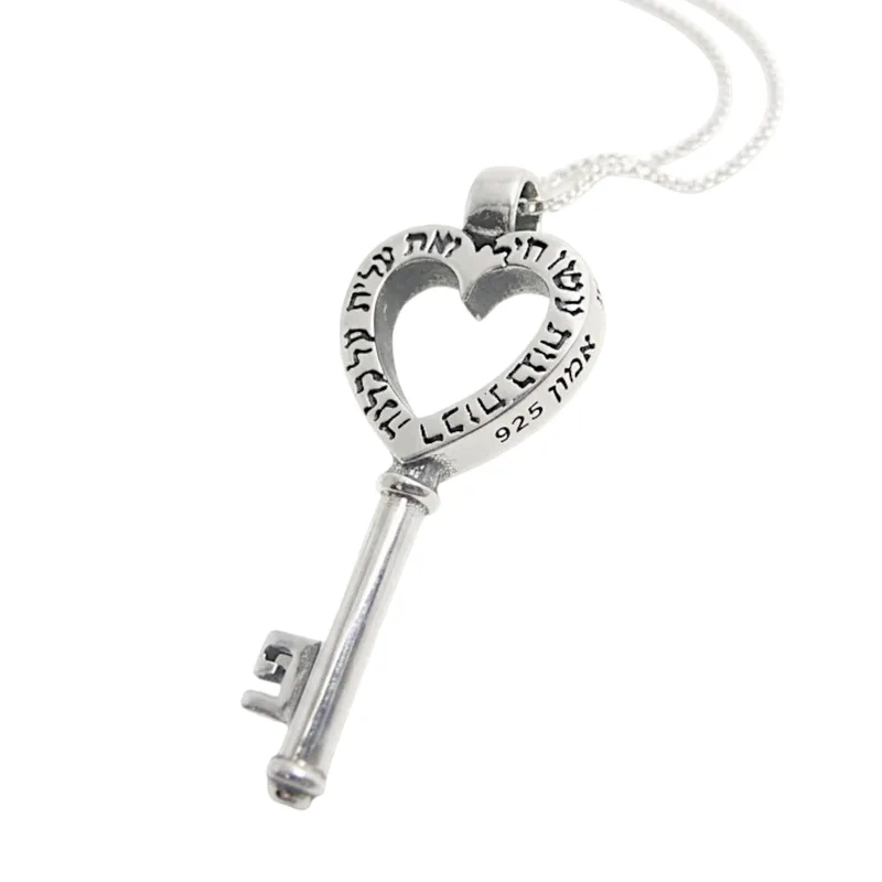 תליון מפתח לב "רבות בנות עשו חיל ואת עלית על כולנה" , כסף