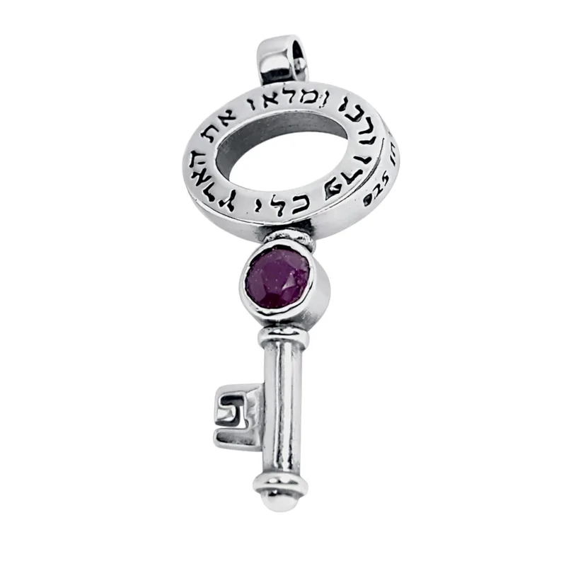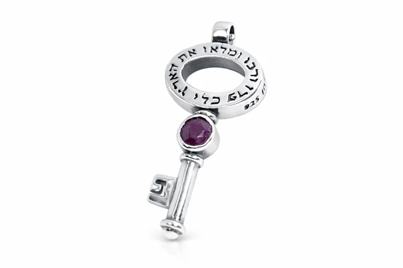 תליון מפתח "פרו ורבו ומלאו את הארץ" כסף משובץ אבן רובי (מומלץ לפריון ופוריות)
