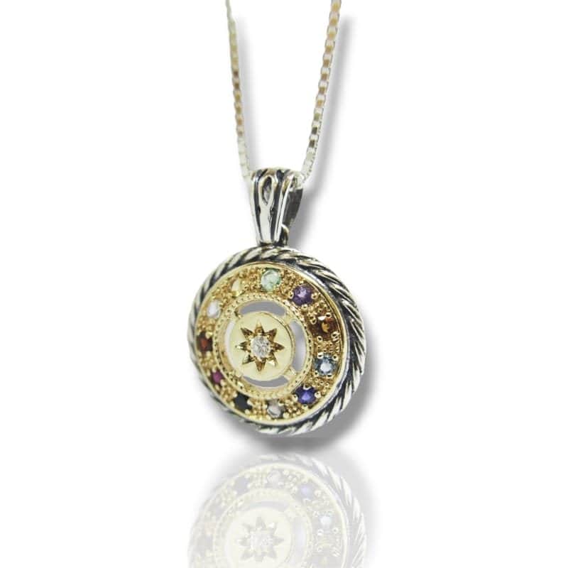 תליון חושן "אריאנה" , כסף וזהב משובץ 12 אבני החושן