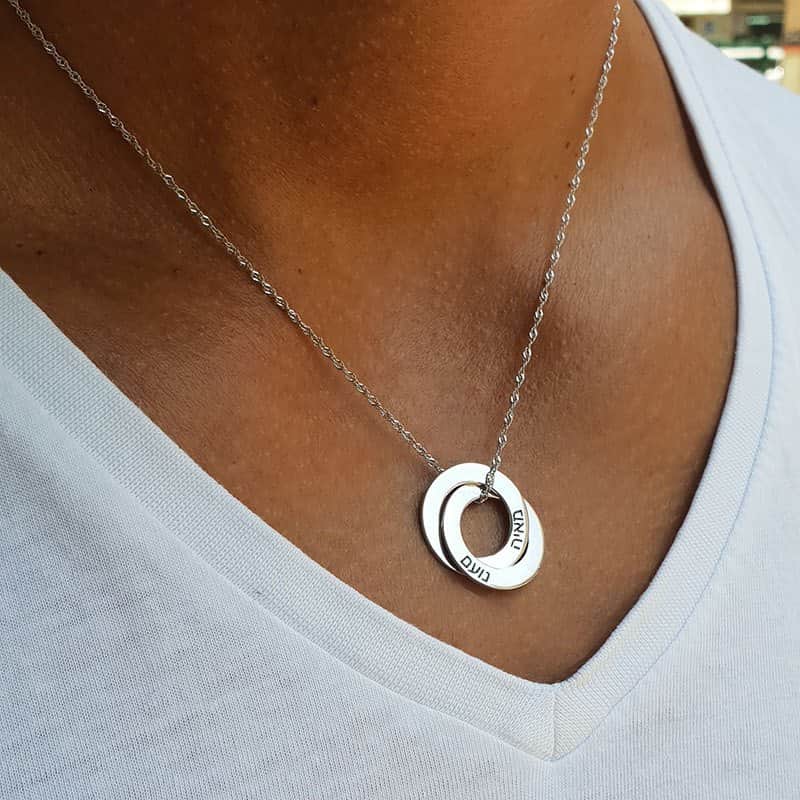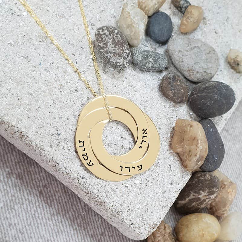 שרשרת 3 חישוקים חבוקים בהתאמה וחריטה אישית