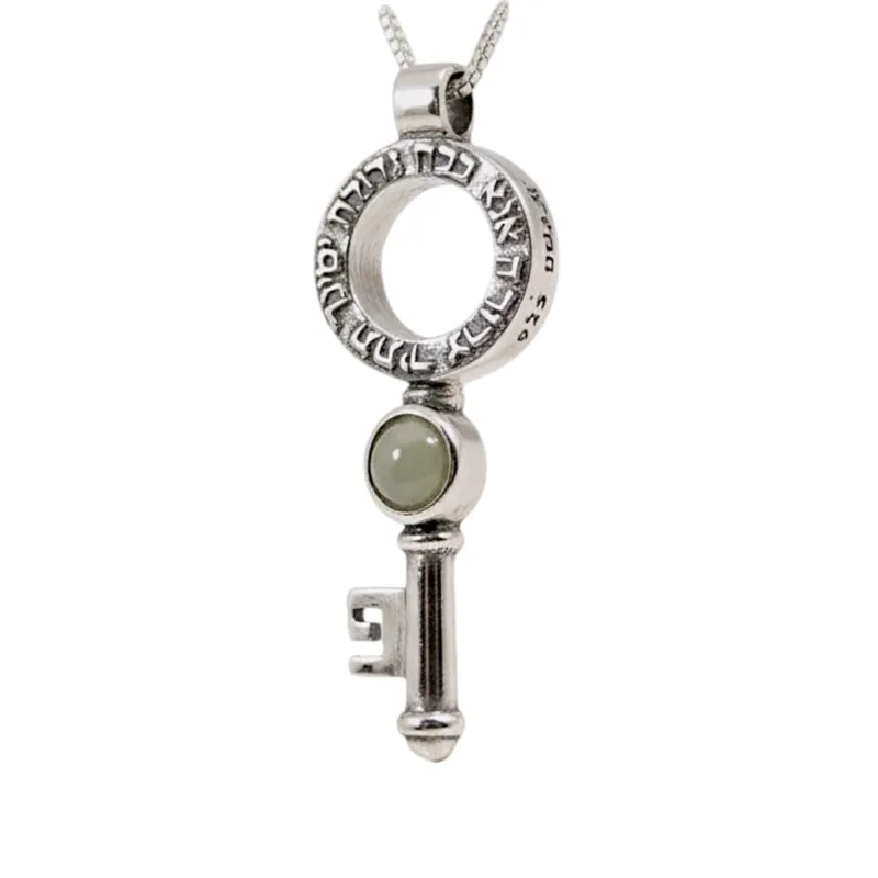 תליון מפתח "אנא בכח" משובץ באבן קריסובריל (לבחירה) , כסף