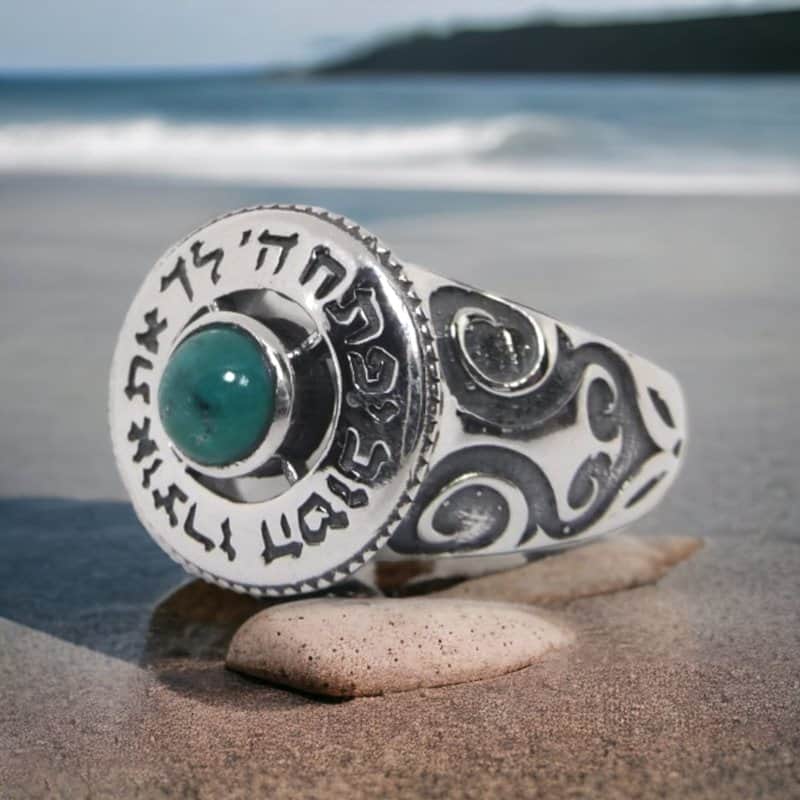 טבעת "יפתח לך ה' את אוצרו הטוב" משובצת אבן טורכיז (לבחירה) , כסף