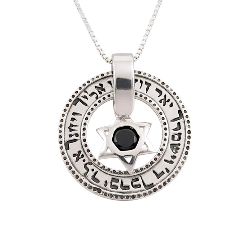 שרשרת "יברכך ה' וישמרך א.ל.ד" ומגן דוד משובץ אבן אוניקס (לבחירה) , כסף