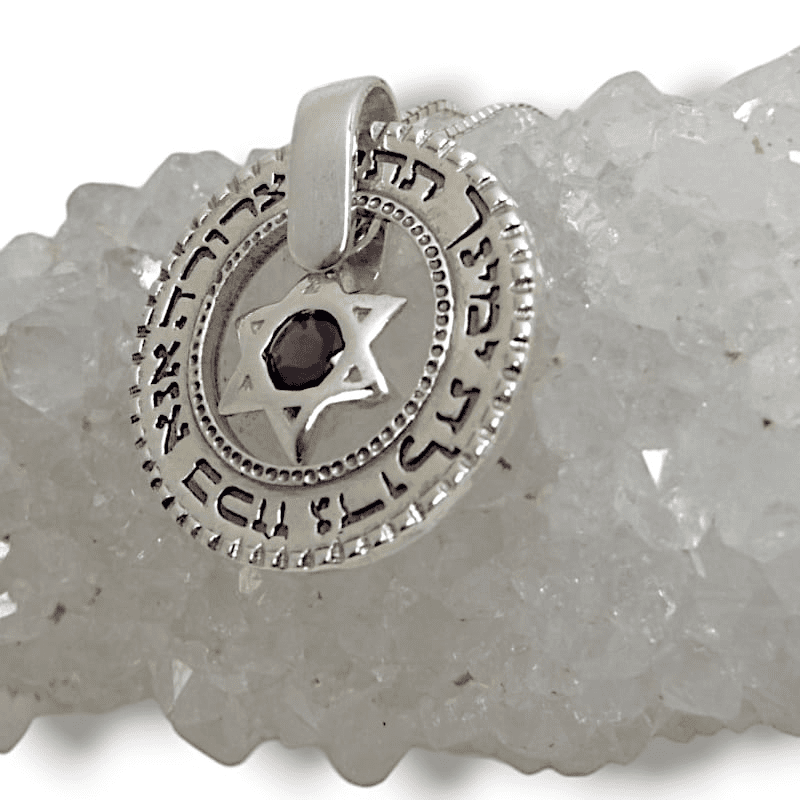 שרשרת "אנא בכח" ומגן דוד משובץ אבן גרנט (לבחירה) , כסף