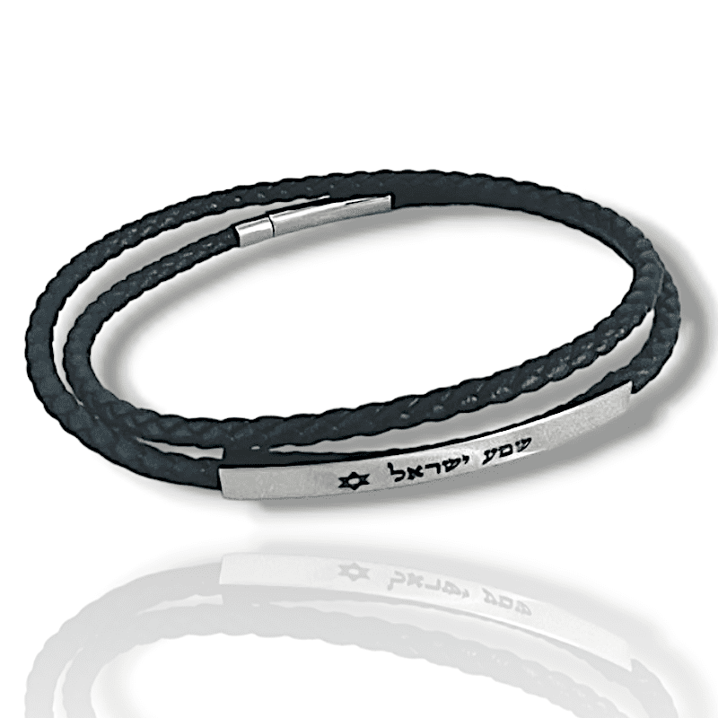 צמיד עור איטלקי STAINLESS STEEL בשילוב חריטה לבחירה - כסוף