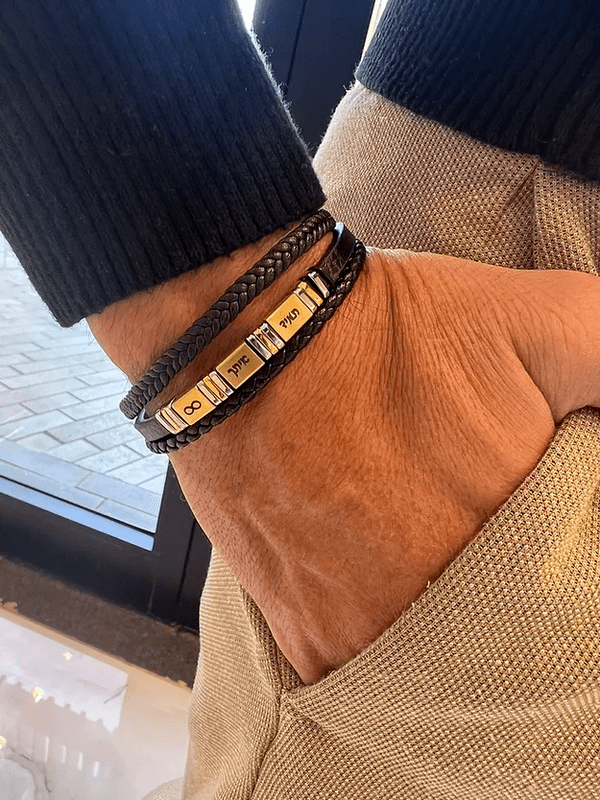 צמיד עור STAINLESS STEEL בשילוב חריטה לבחירה - מוזהב