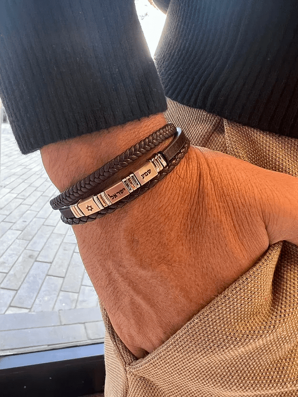 צמיד עור STAINLESS STEEL בשילוב חריטה לבחירה - רוז גולד