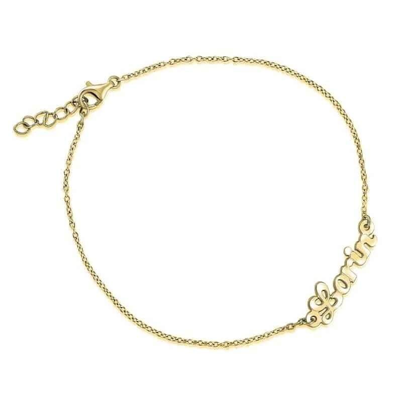 צמיד לולאות לרגל משולב עם שם בכל שפה בהזמנה אישית כרצונכם.