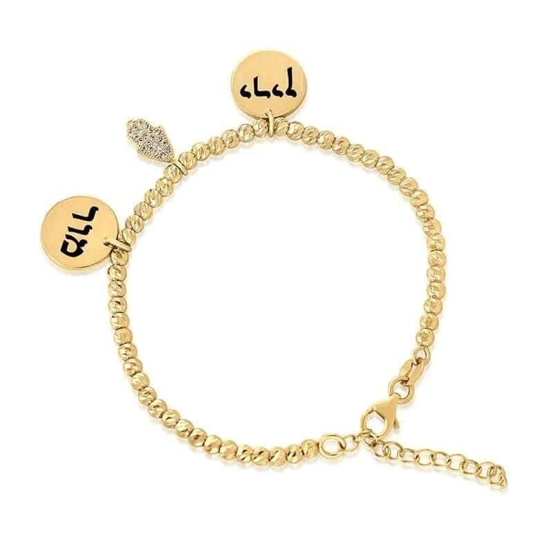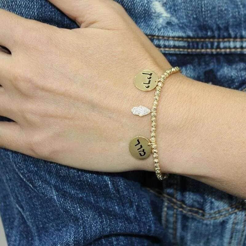 צמיד כדורים בשילוב חמסה + 2 תליוני חותם