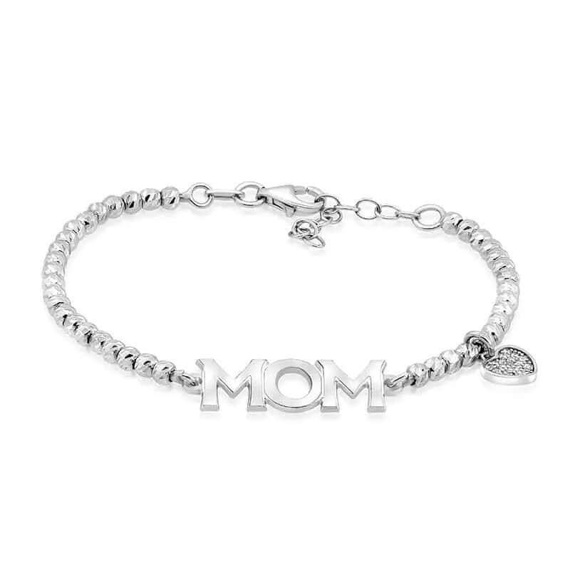 צמיד כדורים בשילוב שם ולב משובץ