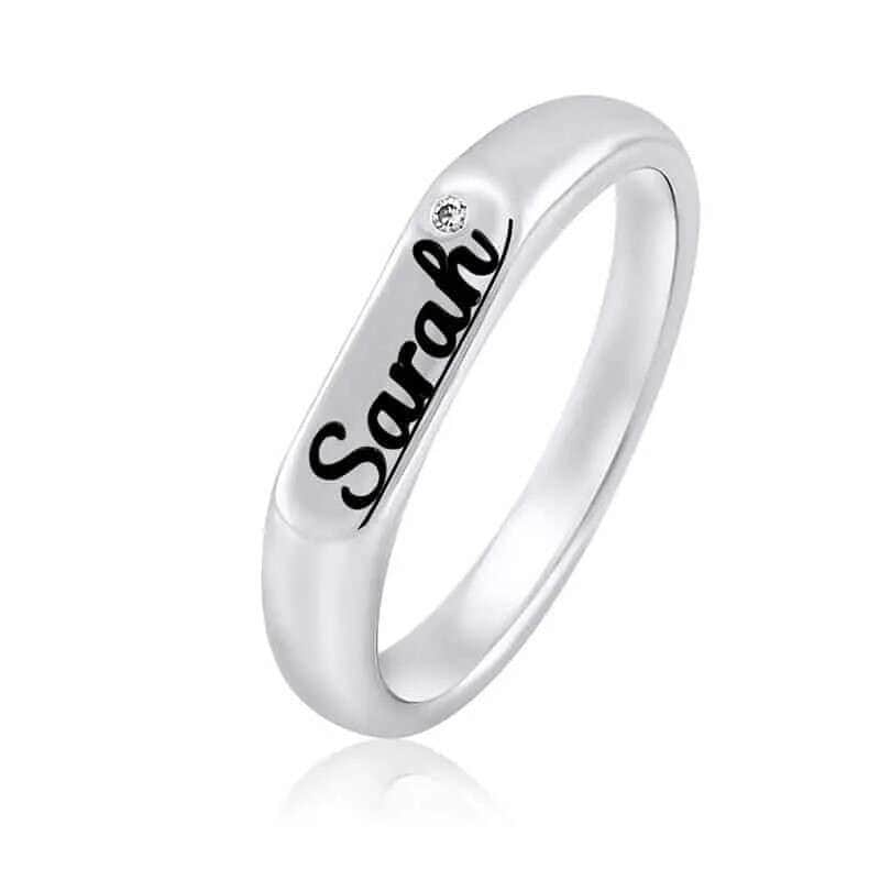 טבעת פס עם חריטה משובצת זירקון