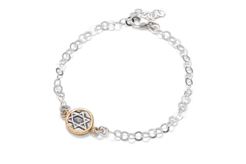 צמיד קסם - תליון מגן דוד, כסף בשילוב ציפוי זהב