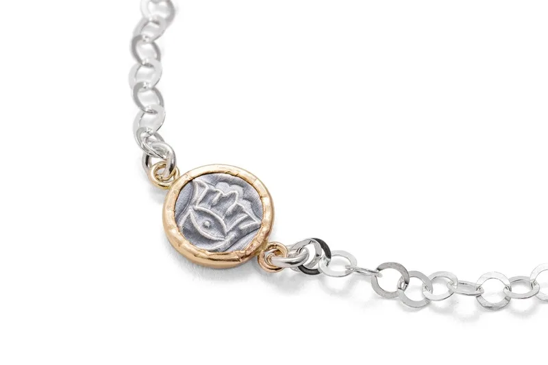 צמיד קסם - תליון חמסה , כסף בשילוב ציפוי זהב