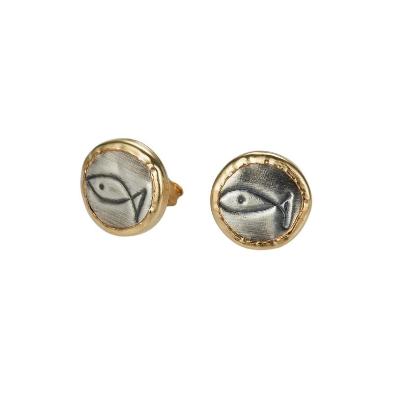 עגילים צמודים ציפוי זהב - דגים