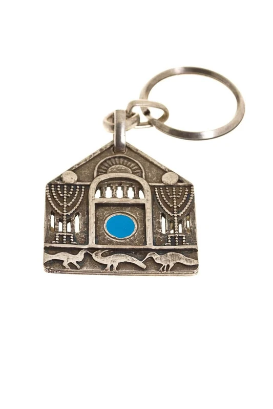 מחזיק מפתחות - יודאיקה - מחזיק מפתחות טליסמן ציפוי כסף וטורקיז