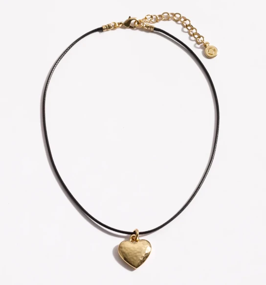 צ׳וקר לב צ׳אנקי על חוט דמוי עור, טרנדית ומדויקת. השרשרת עשויה בעבודת יד ישראלית ומצופה זהב 24K.