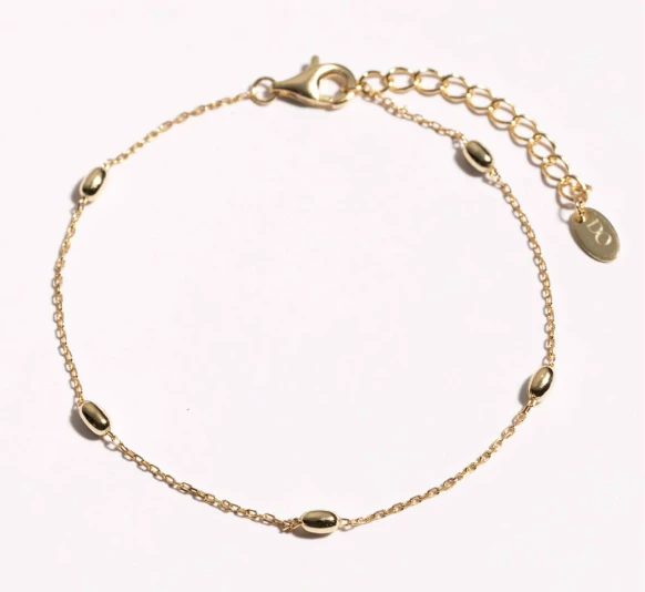 צמיד עדין משולב כדורים אובליים מבריקים, בעיצוב מחמיא שמוסיף ניצוץ לכל לוק שתבחרו.