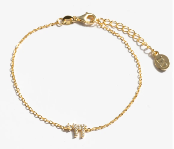 צמיד עדין עם אותיות חי מנצנצות משובצות בזירקונים.