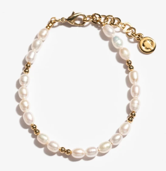 צמיד פנינים טבעיות משולב חרוזי מתכת עדינים, בעיצוב קלאסי ומחמיא.
