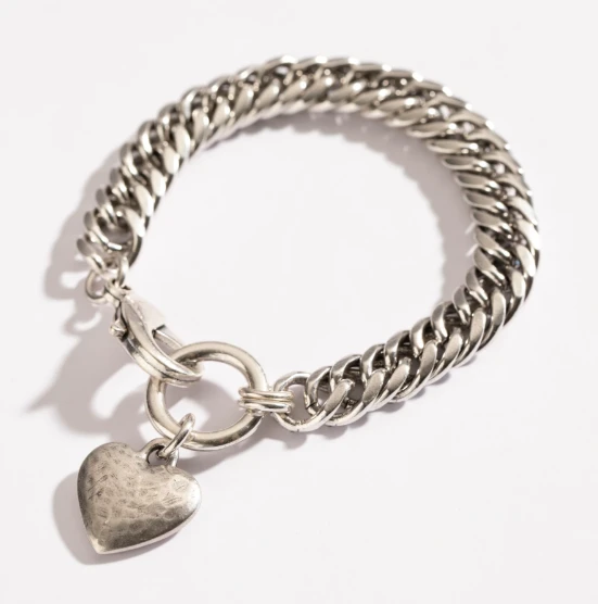 צמיד סטייטמנט מרשים ובעל נוכחות בולטת, מעוטר בתליון לב צ'אנקי למקסימום סטייל. הצמיד עשוי בעבודת יד ישראלית ומצופה