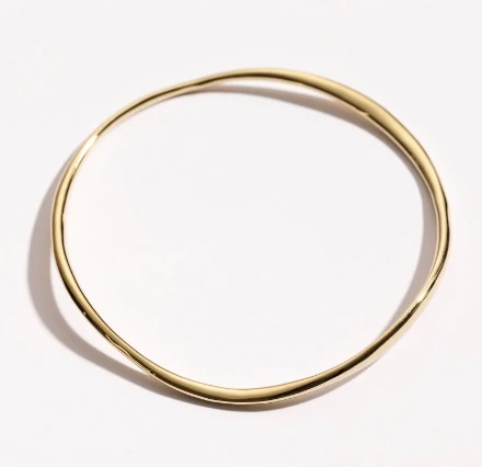 צמיד קשיח דק ואמורפי עשוי בעבודת יד ישראלית, מצופה זהב 24K.