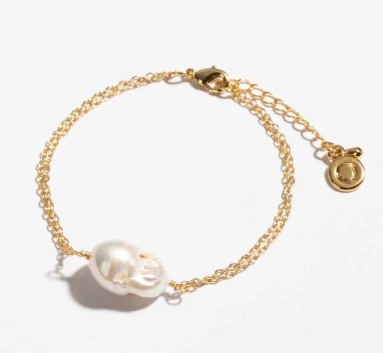 צמיד עם פנינת בארוק יפהפיה על שרשרת כפולה, בעיצוב מדויק ומלא סטייל, ללוק טרנדי ואלגנטי.