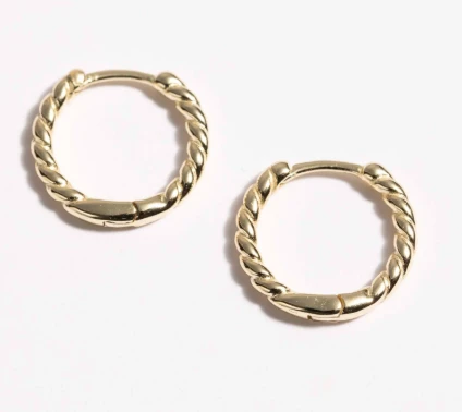 עגילי חישוק בינוניים עם דוגמה מלופפת, בעיצוב טרנדי ומחמיא.