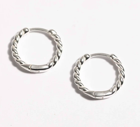 עגילי חישוק בינוניים עם דוגמה מלופפת, בעיצוב טרנדי ומחמיא.