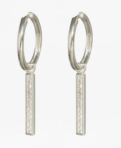 עגילי חישוק עם תליון בצורת מוט משובץ לאורכו בזירקונים, בעיצוב נקי ויוקרתי ללוק טרנדי ומחמיא.