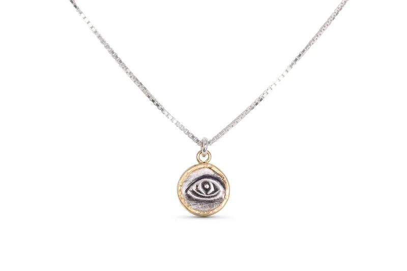 שרשרת קסם "עין" , כסף בשילוב ציפוי זהב