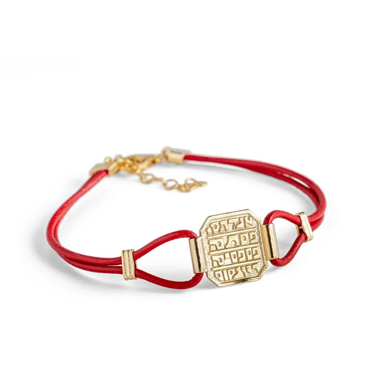 צמיד קמע ריפוי מהמאה ה-18 עור אדום, ציפוי זהב