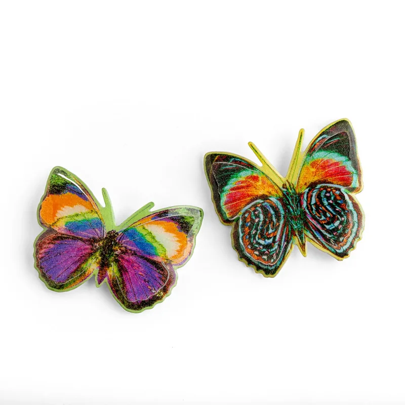 סיכת פרפר צבעונית בעיצוב מקורי של איריס אוליבר. כל סיכה היא ייחודית, כאשר הגוונים משתנים לפי המלאי.