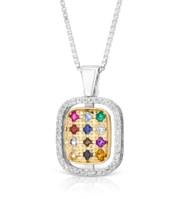 תליון "אבני החושן" כסף בשילוב זהב משובץ בשנים-עשר אבני החושן (כולל יהלום).
