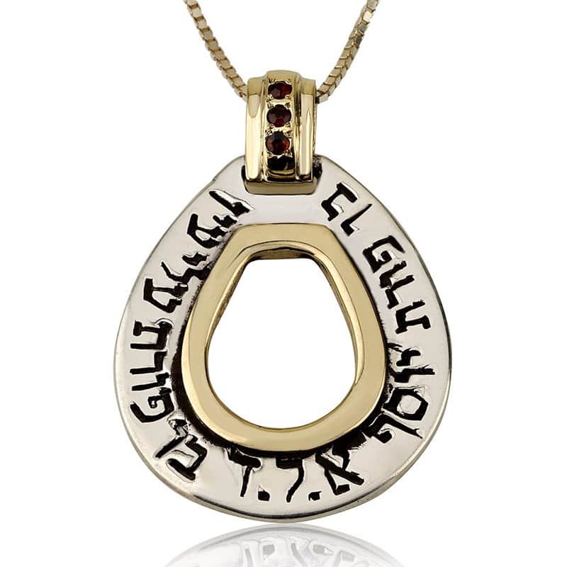 תליון אובאלי "בן פורת יוסף" משובץ גרנט (לבחירה) , זהב וכסף