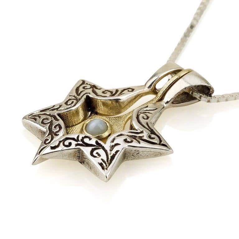 תליון מגן דוד "יונתן" משובץ קריסובריל (לבחירה) , כסף וזהב