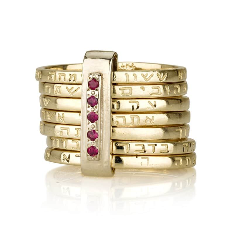 טבעת "שבע ברכות" זהב 14K , משובצת רובי (לבחירה)