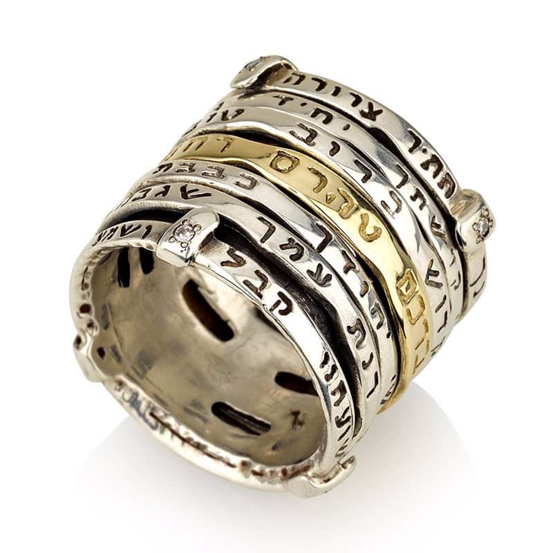 טבעת "אנא בכח" כסף וזהב משובצת יהלומים / רובי (כל התפילה)
