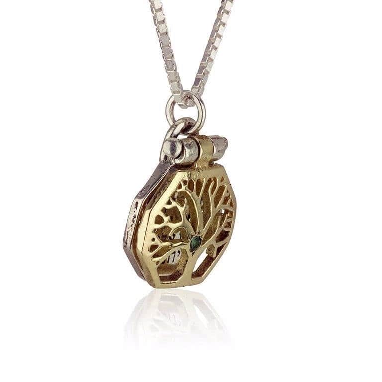 תליון "עץ החיים" (קטן) נפתח ,5 מתכות משובץ אמרלד (לבחירה) ברכת כהנים