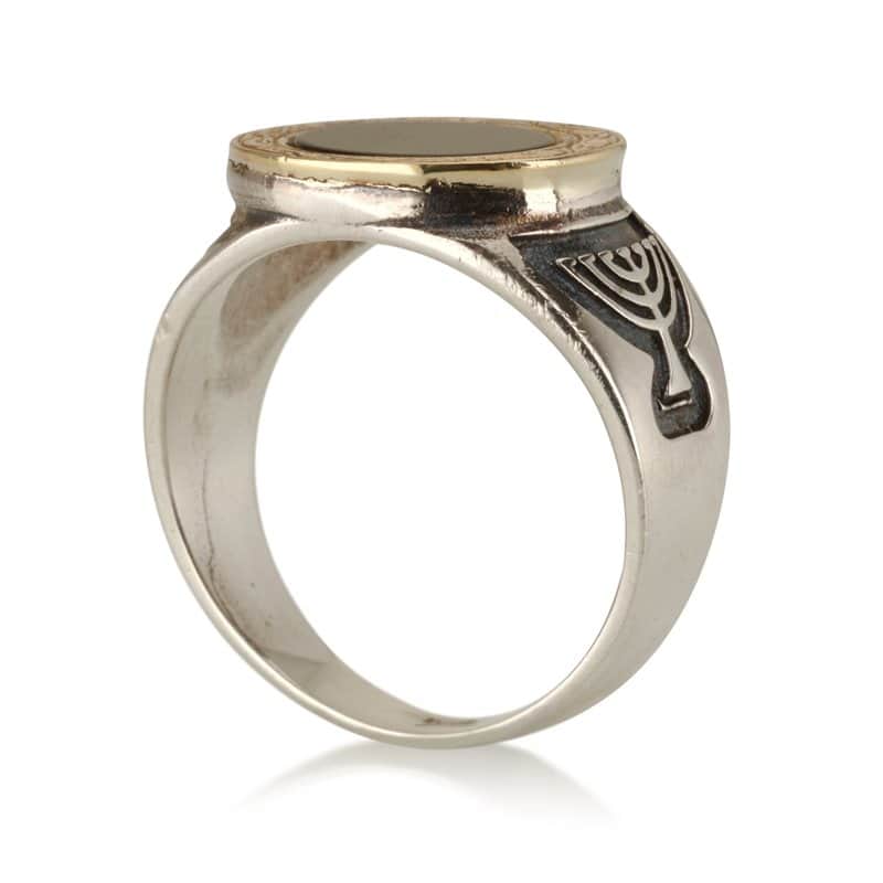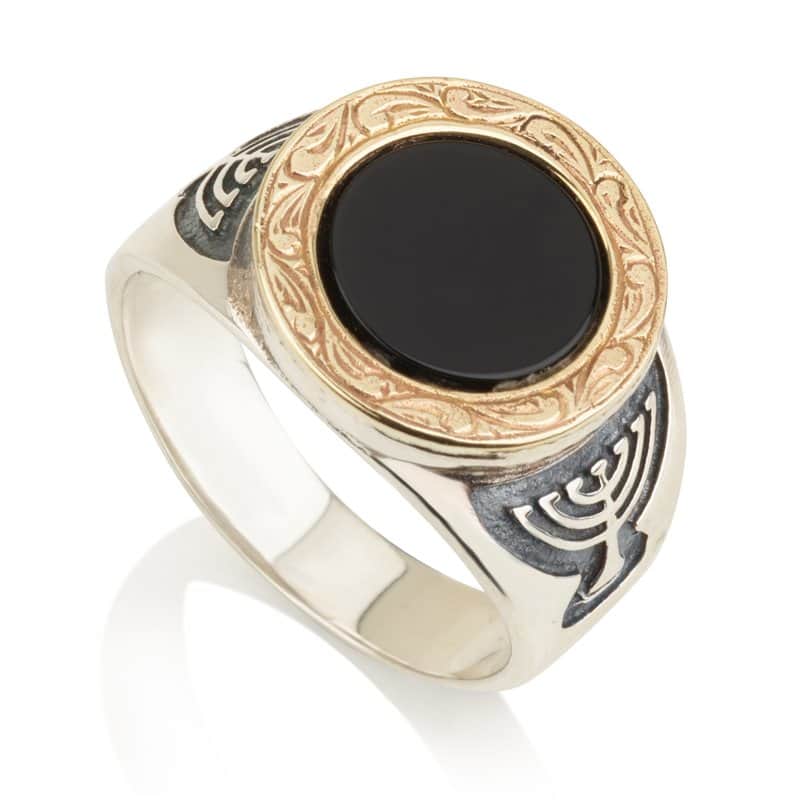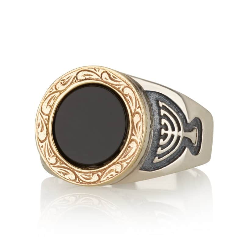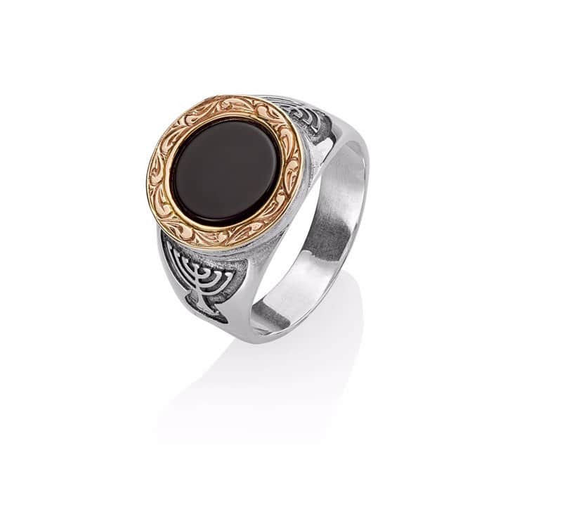 טבעת "מירים" משובצת אוניקס (לבחירה) , כסף וזהב