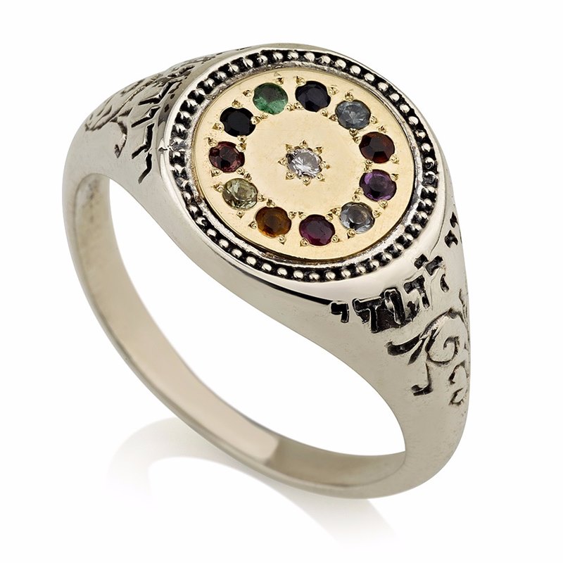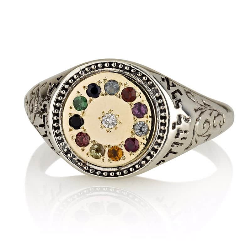 טבעת חושן "יהלי" כסף וזהב משובצת 12 אבני החושן