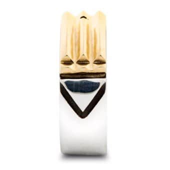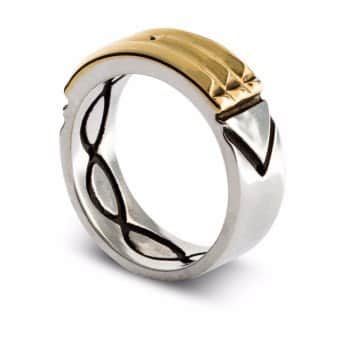 יצרנו העתק מדויק של הטבעת, שילוב של כסף 925, המתכת הסבילה המספקת רוגע, עם זהב 14 קראט, המתכת הפעילה המספקת דינמיות.