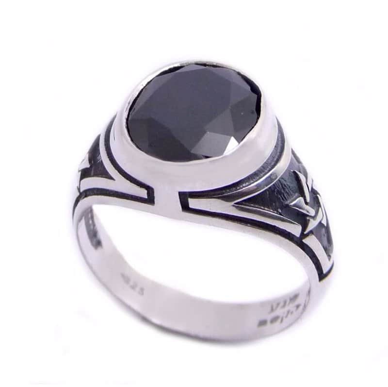 טבעת מגיני דוד אובאלית לגבר , כסף משובצת אבן אוניקס