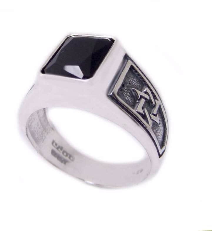טבעת כסף קולג' מלבן משובצת אבן (לבחירה) בשילוב מגיני דוד