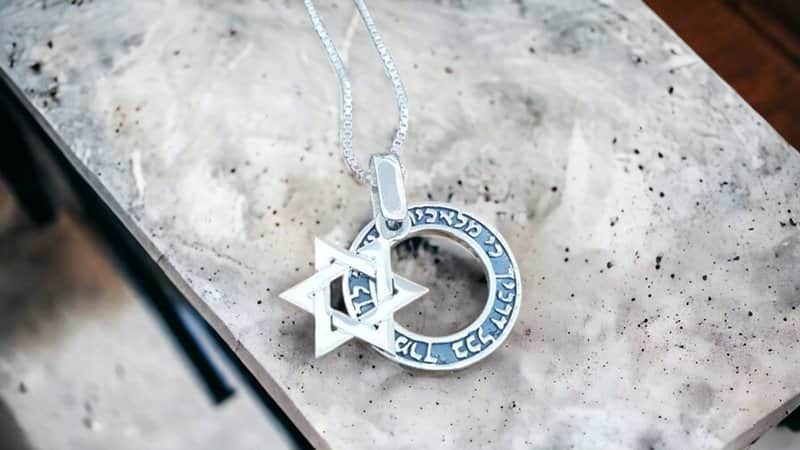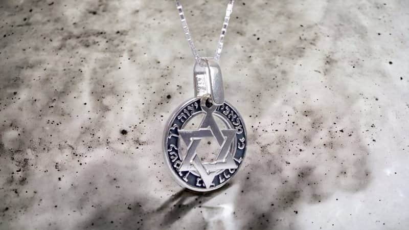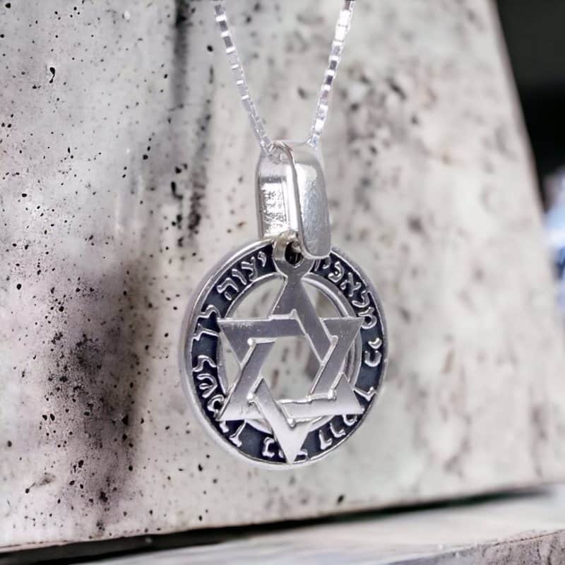 תליון מגן דוד מתנדנד על חישוק "כי מלאכיו" כסף