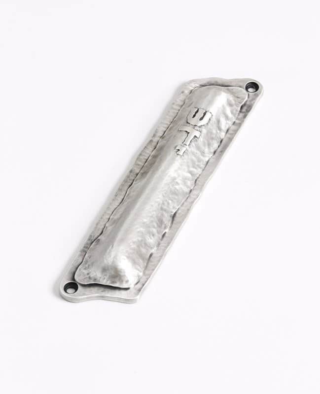 מזוזה עדינה זו עוטפת את הקלף במעין חיבוק ומקושטת במילה שדי המובלטת במתכת.